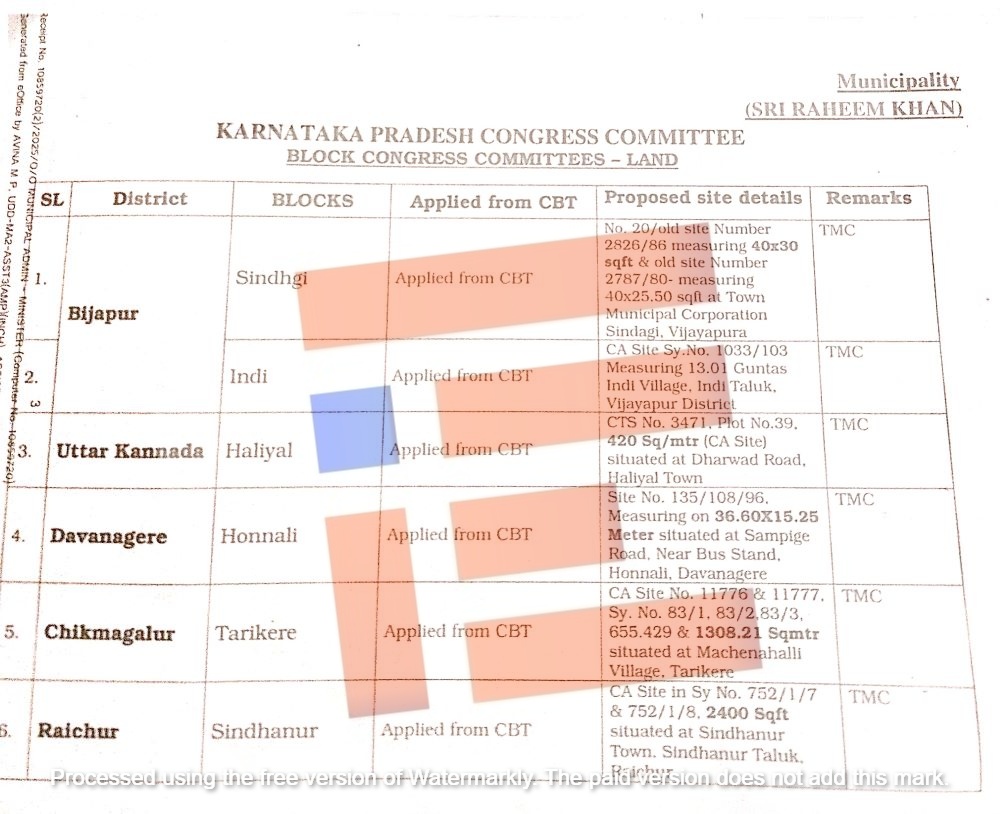 ಅಖಿಲ ಭಾರತ ಕಾಂಗ್ರೆಸ್ ಸಮಿತಿಯ ನಿರ್ದೇಶನವನ್ನು ಪಾಲಿಸಲೇಬೇಕಾದ ಅನಿವಾರ್ಯತೆ ಕೆಪಿಸಿಸಿಗೆ ಎದುರಾಗಿದೆ. ಕಂದಾಯ, ನಗರಾಭಿವೃದ್ಧಿ ಇಲಾಖೆ ವ್ಯಾಪ್ತಿಯಲ್ಲಿನ ಸರ್ಕಾರಿ ಜಾಗ, ನಗರಾಭಿವೃದ್ಧಿ ಪ್ರಾಧಿಕಾರಗಳು ಅಭಿವೃದ್ಧಿಪಡಿಸಿರುವ ಬಡಾವಣೆಗಳಲ್ಲಿನ ಸಿ ಎ ನಿವೇಶನಗಳನ್ನು ಮಂಜೂರಾಗುತ್ತಿವೆ.