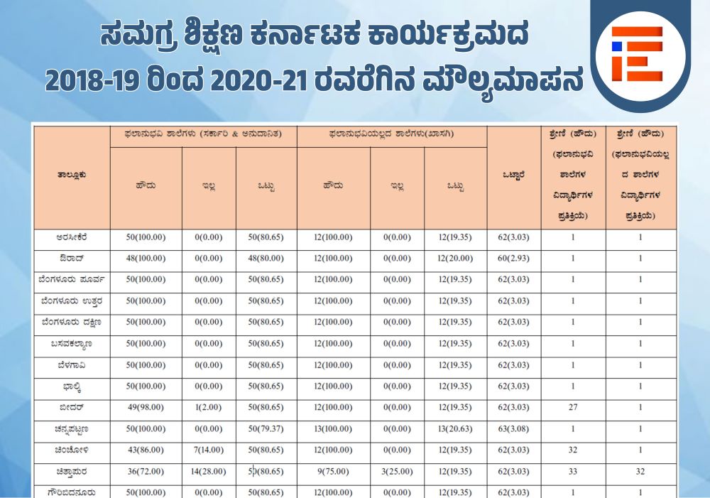 ಶಾಲಾ ಮತ್ತು ಸಾಕ್ಷರತಾ ಇಲಾಖೆಯಲ್ಲಿನ “ಸಮಗ್ರ ಶಿಕ್ಷಣ ಕರ್ನಾಟಕ ಕಾರ್ಯಕ್ರಮದ 2018-19 ರಿಂದ 2020-21 ರ ವರೆಗಿನ ಮೌಲ್ಯಮಾಪನʼ ನಡೆಸಿರುವ ಮೈಸೂರಿನ ಗ್ರಾಸ್ ರೂಟ್ಸ್ ರಿಸರ್ಚ್ ಅಂಡ್ ಅಡ್ವೊಕಸಿ ಮೂವ್ ಮೆಂಟ್ (ಜಿಆರ್ ಎಎಎಂ) ಕಳೆದ ಜುಲೈನಲ್ಲಿ ಅಧ್ಯಯನ ವರದಿಯನ್ನು ಸರ್ಕಾರಕ್ಕೆ ಸಲ್ಲಿಸಿದೆ. ಈ ಅಧ್ಯಯನ ವರದಿಯು ಸಮಗ್ರ ಶಿಕ್ಷಣ ಅನುಷ್ಠಾನದ ಕುರಿತು ಬೆಳಕು ಚೆಲ್ಲಿದೆ.