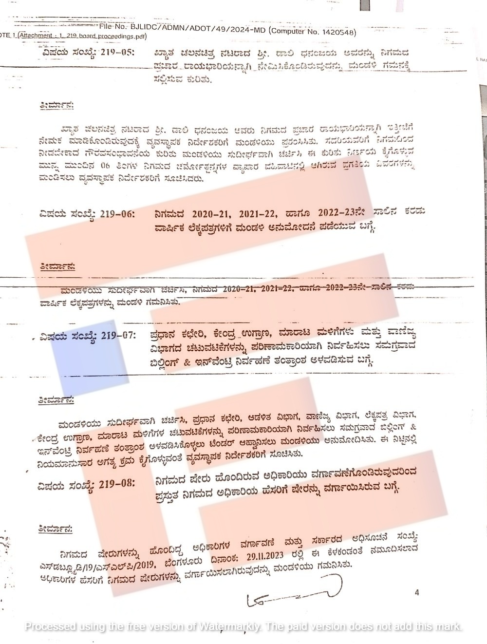 ಇದಕ್ಕೆ ಸಂಬಂಧಿಸಿದಂತೆ ‘ದಿ ಫೈಲ್’ಗೆ ದಾಖಲೆಗಳು (BJLIDC/ADMN/ADOT/49/2024-MD) ಲಭ್ಯವಾಗಿವೆ.