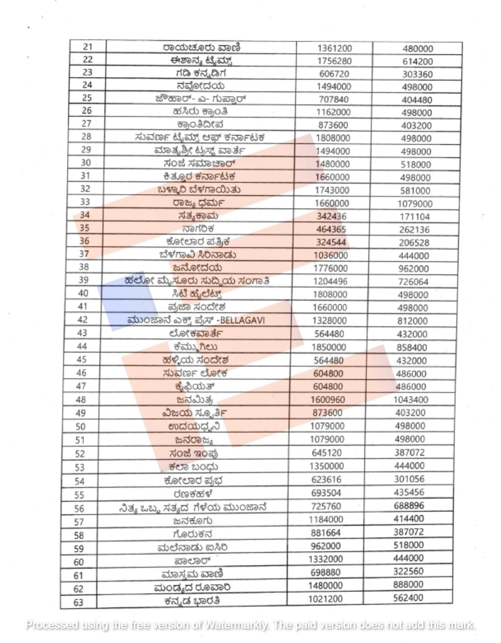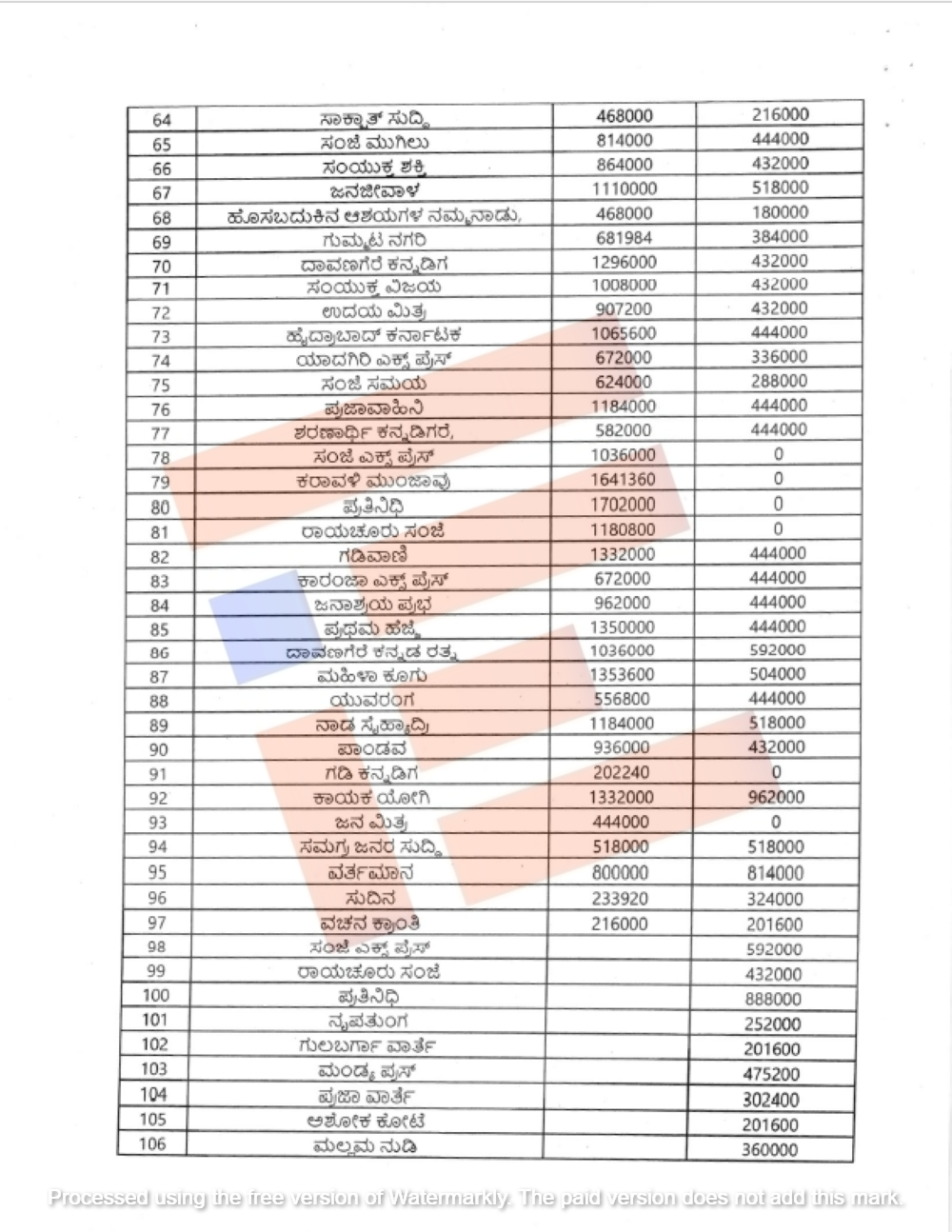 2023-24ನೇ ಸಾಲಿನಲ್ಲಿ ಮೈಸೂರಿನ ʻಮೈಸೂರು ಮಿತ್ರʼ ಕ್ಕೆ 14.11 ಲಕ್ಷ ರು.ಗಳ, ರಾಯಚೂರು ಮೂಲದ ʻಸುದ್ದಿ ಮೂಲʼ ಪತ್ರಿಕೆಗೆ 18.42 ಲಕ್ಷ ರು.ಗಳ, ಬೆಳಗಾವಿಯ ʻಲೋಕದರ್ಶನʼ ಪತ್ರಿಕೆಗೆ 20.75 ಲಕ್ಷ ರು.ಗಳ ಮತ್ತು ʻಕನ್ನಡಮ್ಮʼ ಪತ್ರಿಕೆಗೆ 23.90 ಲಕ್ಷ ರು.ಗಳ, ಕೋಲಾರದ ʻಕೋಲಾರವಾಣಿʼ ಪತ್ರಿಕೆಗೆ 18.26 ಲಕ್ಷ ರು.ಗಳ, ಕಲಬುರಗಿಯ ʻಕ್ರಾಂತಿʼ ಪತ್ರಿಕೆಗೆ 21.58 ಲಕ್ಷ ರು.ಗಳ,