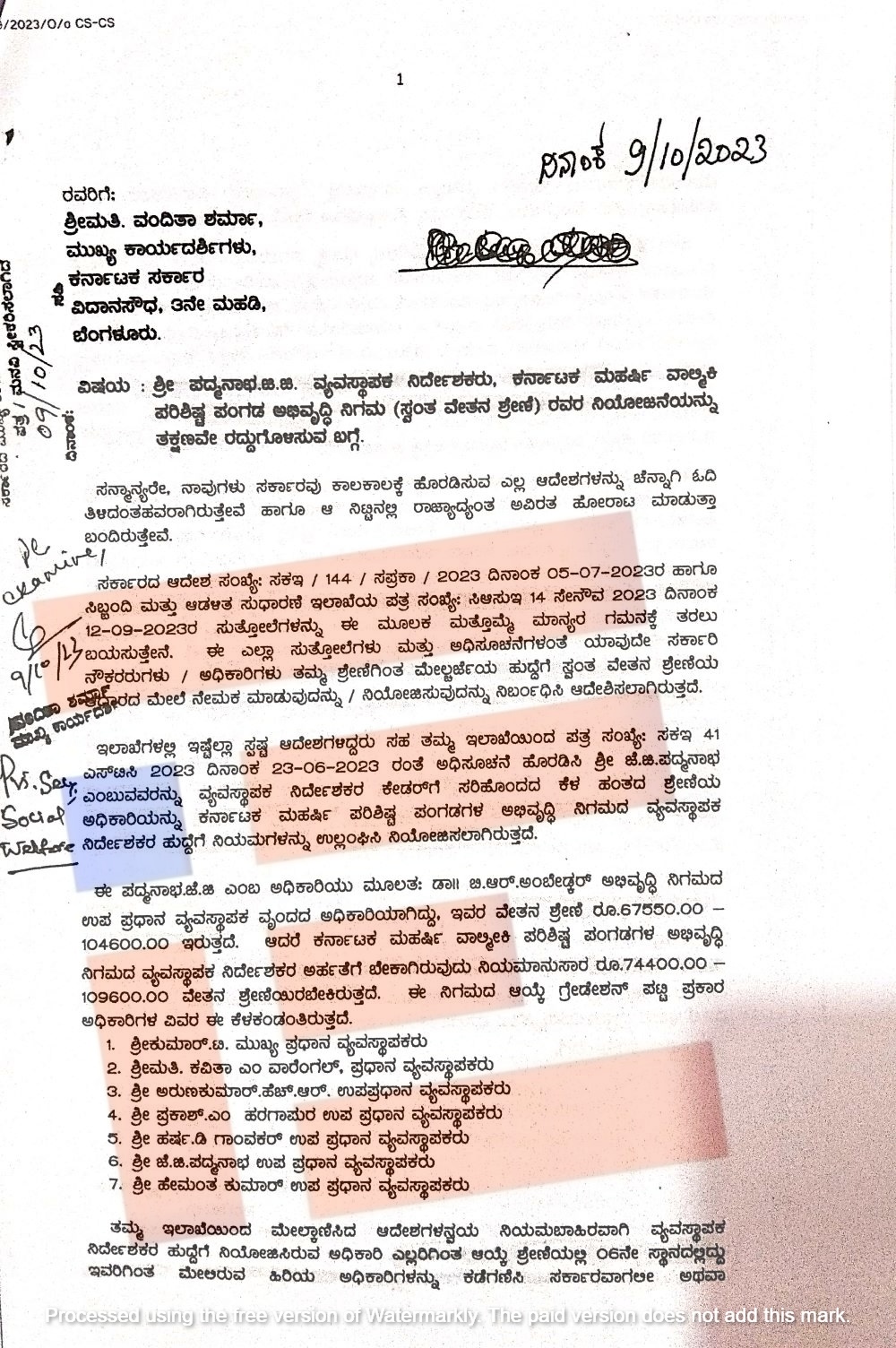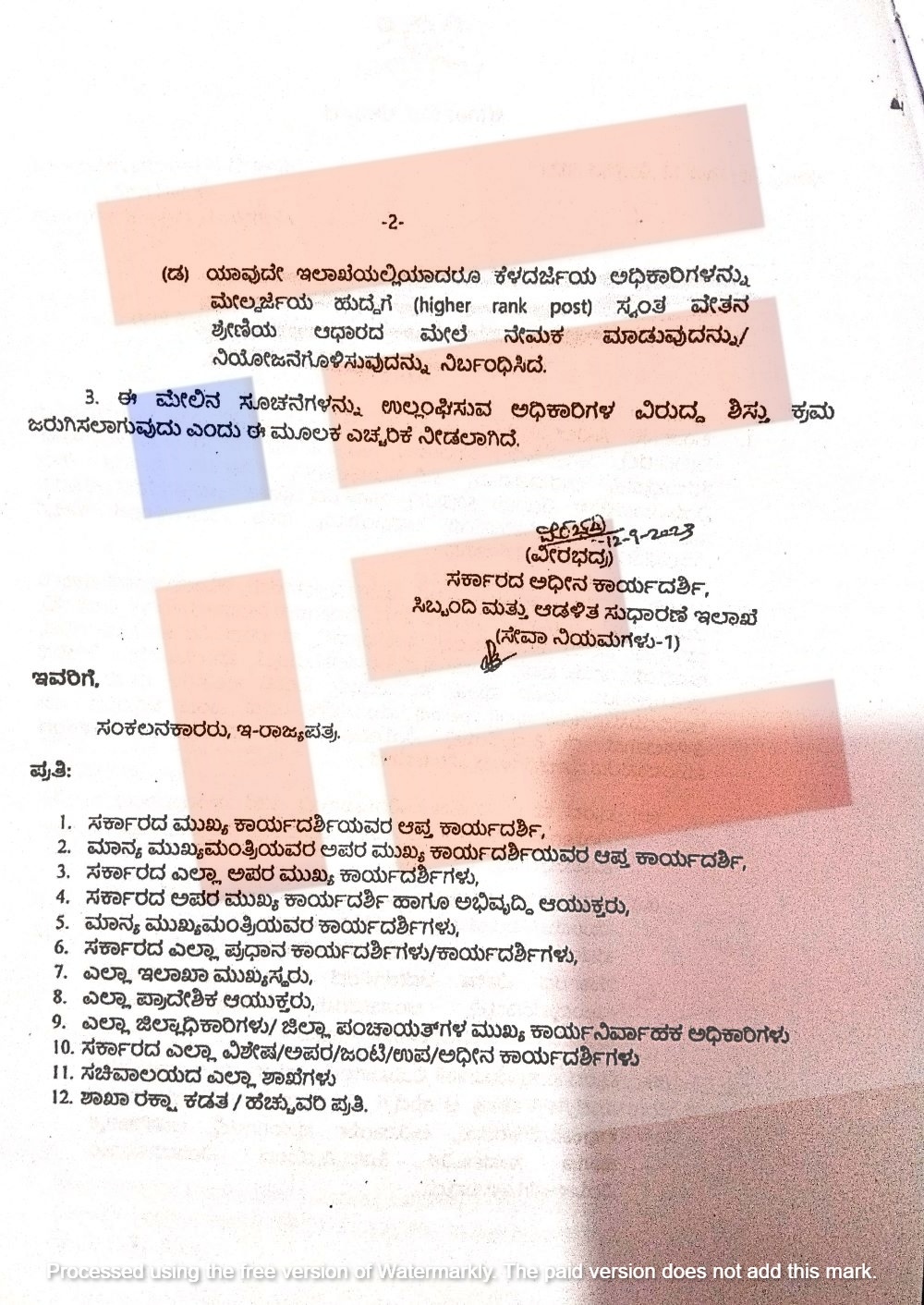 ಅಲ್ಲದೇ ಸಮಾಜ ಕಲ್ಯಾಣ ಇಲಾಖೆಯ ಎಲ್ಲಾ ಅಧೀನ ಇಲಾಖೆ, ನಿಗಮ, ಮಂಡಳಿ, ಸಂಸ್ಥೆ, ಆಯೋಗದಲ್ಲಿ ಅಧಿಕಾರಿ, ನೌಕರರು ಸ್ವಂತ ವೇತನ ಶ್ರೇಣಿ ಮೇರೆಗೆ ಮೇಲ್ದರ್ಜೆ ಹುದ್ದೆಯಲ್ಲಿ ಕಾರ್ಯನಿರ್ವಹಿಸುತ್ತಿದ್ದರು. ಇಂತಹ ಪ್ರಕರಣಗಳು ಇಲಾಖೆಯಲ್ಲಿ ಮರುಕಳಿಸಬಾರದು ಎಂದು ಸಮಾಜ ಕಲ್ಯಾಣ ಇಲಾಖೆಯ ಸರ್ಕಾರದ ಪ್ರಧಾನ ಕಾರ್ಯದರ್ಶಿ ಆಪ್ತ ಕಾರ್ಯದರ್ಶಿ ಅವರು ಅಧೀನ ಕಾರ್ಯದರ್ಶಿಗಳಿಗೆ 2023ರ ಜುಲೈ 5ರಂದೇ  ಟಿಪ್ಪಣಿ ಹೊರಡಿಸಿದ್ದರು.