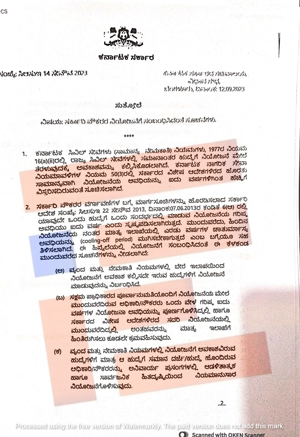 ಕರ್ನಾಟಕ ಸರ್ಕಾರದ ಸಚಿವಾಲಯವು 2023ರ ಸೆ.12ರಂದೇ ಸುತ್ತೋಲೆ ಹೊರಡಿಸಿತ್ತು.