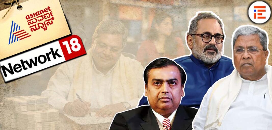 ಬೆಂಗಳೂರು : ಅಂಬಾನಿ ಒಡೆತನಕ್ಕೆ ಸೇರಿದ ರಿಲಯೆನ್ಸ್ ಸಮೂಹದ ʻನ್ಯೂಸ್ 18 ಕನ್ನಡʼ ಕೇರಳ ಬಿಜೆಪಿ ಘಟಕದ ಅಧ್ಯಕ್ಷ, ಮಾಜಿ ಕೇಂದ್ರ ಸಚಿವ ರಾಜೀವ್ ಚಂದ್ರಶೇಖರ್ ನೇತೃತ್ವದ ಏಷ್ಯಾನೆಟ್ನ ʻಸುವರ್ಣ ನ್ಯೂಸ್ʼ ಸುದ್ದಿವಾಹಿನಿಗೂ ರಾಜ್ಯ ಕಾಂಗ್ರೆಸ್ ಸರ್ಕಾರವು ಕೋಟ್ಯಂತರ ರು. ಮೊತ್ತದ ಜಾಹೀರಾತು ನೀಡಿದೆ.