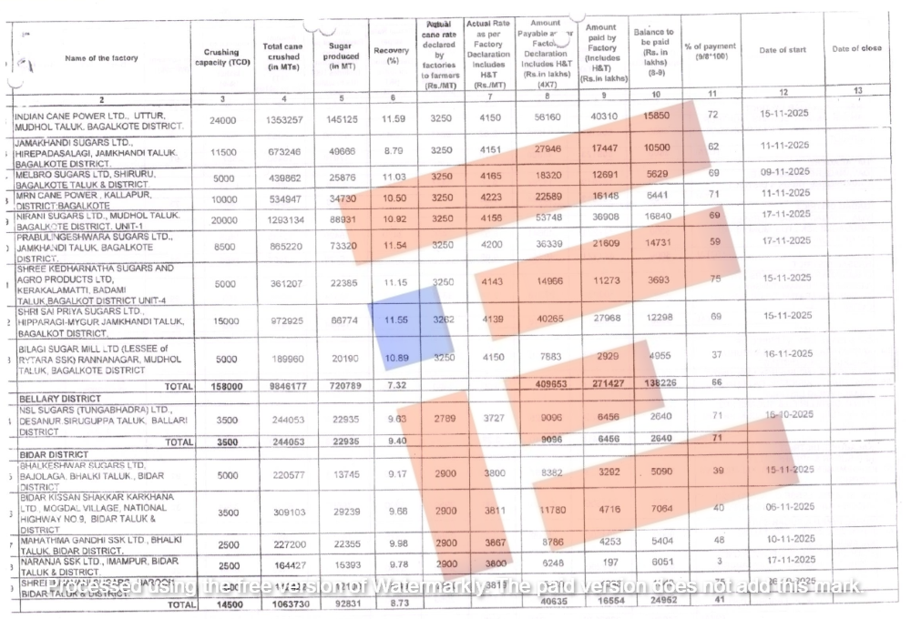 ಬಾಗಲಕೋಟೆ ಜಿಲ್ಲೆಯಲ್ಲಿರುವ ಸಕ್ಕರೆ ಕಾರ್ಖಾನೆಗಳು 1,382.26 ಕೋಟಿ ರು ಬಾಕಿ ಉಳಿಸಿಕೊಂಡಿವೆ. ಈ  ಪೈಕಿ ಕಾಂಗ್ರೆಸ್‌ ಮುಖಂಡ ಹಾಗೂ ಮಾಜಿ ಸಚಿವ ಎಸ್ ಆರ್ ಪಾಟೀಲ್ ಅವರು ನಿರ್ದೇಶಕರಾಗಿರುವ ಬೀಳಗಿ ಷುಗರ್ಸ್‌ ಲಿಮಿಟೆಡ್‌ ಒಟ್ಟಾರೆ 250.68 ಕೋಟಿ ರು ಬಾಕಿ ಉಳಿಸಿಕೊಂಡಿದೆ.