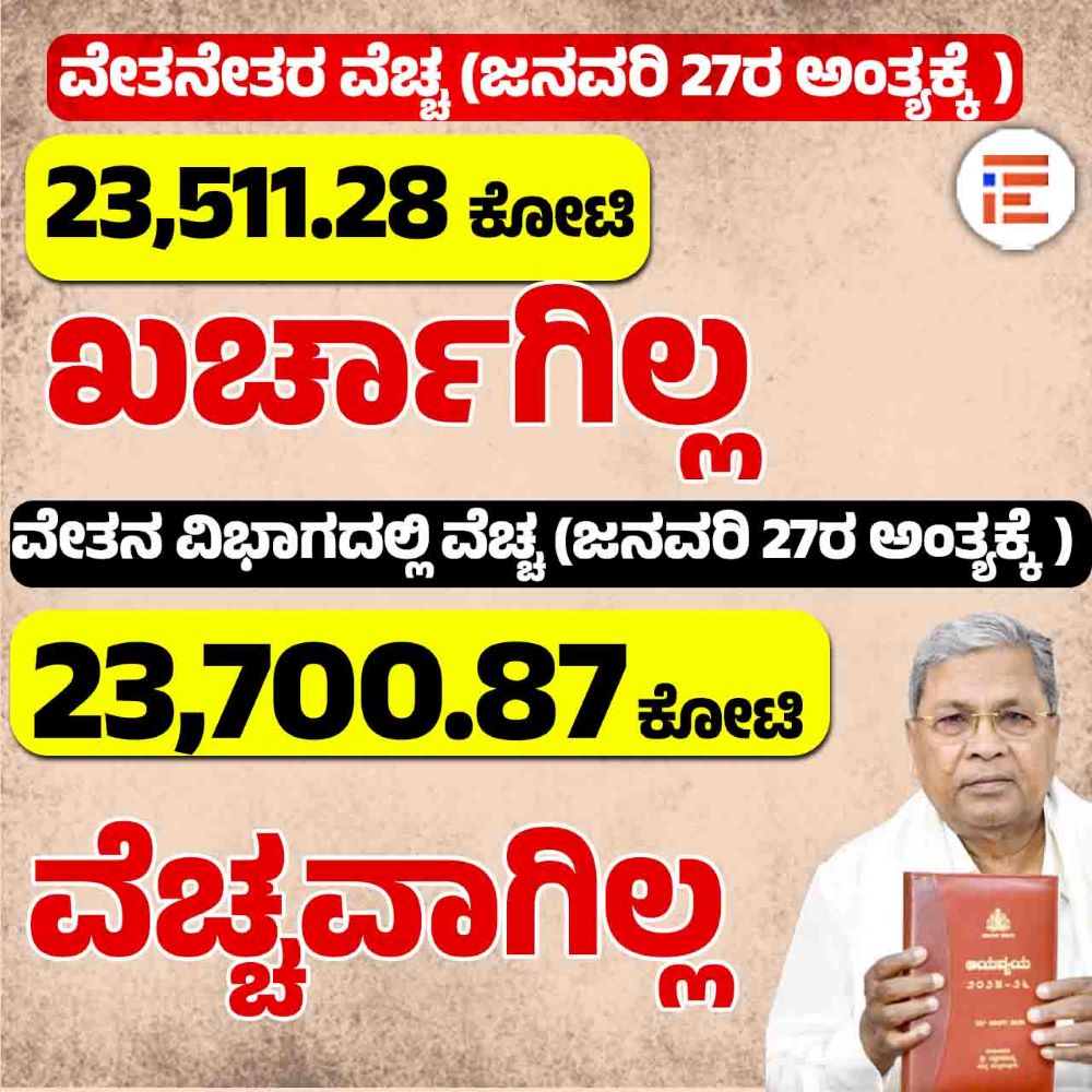 ಅದೇ ರೀತಿ ವೇತನೇತರ ವೆಚ್ಚಗಳಡಿಯಲ್ಲಿ ಜನವರಿ 27ರ ಅಂತ್ಯಕ್ಕೆ 23,511.28 ಕೋಟಿ ಮತ್ತು ವೇತನ ವಿಭಾಗದಲ್ಲಿ 23,700.87 ಕೋಟಿ ರು. ಖರ್ಚಾಗಿಲ್ಲ.