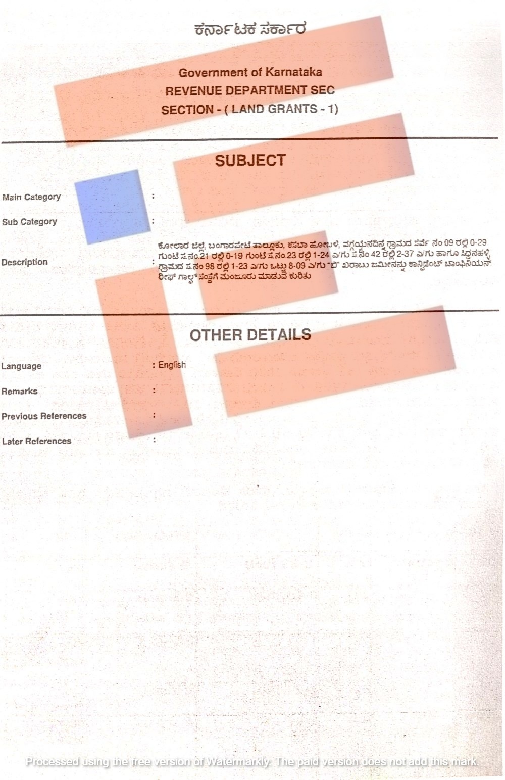 2020ರ ಡಿಸೆಂಬರ್ 15ರಂದು ಹೊರಡಿಸಿದ್ದ ಅಧಿಸೂಚನೆ ಪ್ರಕಾರ ಲ್ಯಾಂಡ್ ಲಾಕ್ ಜಮೀನುಗಳ ಮಂಜೂರಾತಿಗೆ ಸಂಬಂಧಿಸಿದಂತೆ ಕರ್ನಾಟಕ ಭೂ ಮಂಜೂರಾತಿ ನಿಯಮಗಳು 1969ರ ನಿಯಮ 22 A (i) (I) (7)ರಲ್ಲಿ ಕಲ್ಪಿಸಿರುವ ಅವಕಾಶದಂತೆ ಕಾನ್ಫಿಡೆಂಟ್ ಚಾಂಪಿಯನ್ ರೀಫ್ ಸಂಸ್ಥೆಗೆ 8.09 ಎಕರೆ ವಿಸ್ತೀರ್ಣದ ಬಿ ಖರಾಬು ಜಮೀನುಗಳನ್ನು ಮಂಜೂರು ಮಾಡಬಹುದು ಎಂದು ಅಧಿಕಾರಿಗಳು ಅಭಿಪ್ರಾಯಿಸಿದ್ದರು.