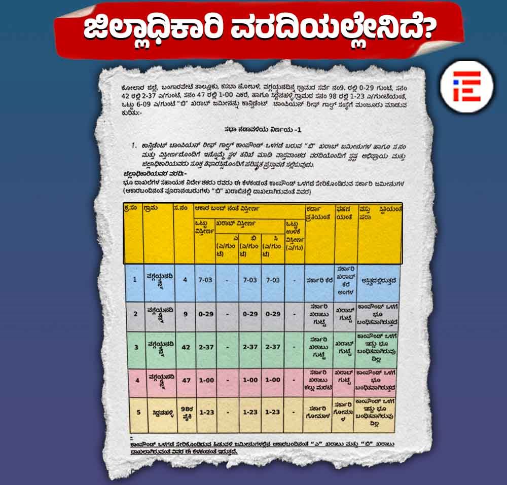 ಈ ಪ್ರಕರಣದಲ್ಲಿ ಭೂ ದಾಖಲೆಗಳ ಸಹಾಯಕ ನಿರ್ದೇಶಕರು, ತಹಸೀಲ್ದಾರ್ ಪ್ರತ್ಯೇಕವಾಗಿ ವರದಿ ನೀಡಿದ್ದರು. ಸರ್ವೆ ಮತ್ತು ಭೂ ದಾಖಲೆಗಳನ್ನು ಕೂಲಂಕುಷವಾಗಿ ಪರಿಶೀಲಿಸದೆಯೇ ಮತ್ತು ಯಾವುದೇ ಭೌತಿಕ ಪರಿವೀಕ್ಷಣೆ ಮಾಡಿರಲಿಲ್ಲ. ಕೋಲಾರ ಜಿಲ್ಲಾಧಿಕಾರಿಯೂ ಸಹ ಇವುಗಳನ್ನು ಸರಿಯಾಗಿ ಪರಿಶೀಲಿಸಿರಲಿಲ್ಲ. ತಹಶೀಲ್ದಾರ್ ಕೊಟ್ಟಿದ್ದ ವರದಿಯನ್ನೇ ಯಥಾವತ್ತಾಗಿ ಸರ್ಕಾರಕ್ಕೆ ಸಲ್ಲಿಸಿದ್ದರು.