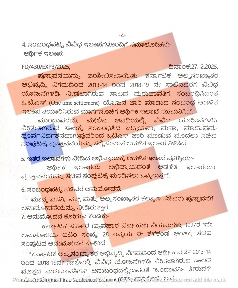 ಅಲ್ಪಸಂಖ್ಯಾತರ ಕಲ್ಯಾಣ ಇಲಾಖೆಯು ಈ ಸಂಬಂಧ ಸಲ್ಲಿಸಿರುವ ಸಚಿವ ಸಂಪುಟ ಟಿಪ್ಪಣಿಯ ರಹಸ್ಯ ಹಾಳೆಗಳು ‘ದಿ ಫೈಲ್’ಗೆ ಲಭ್ಯವಾಗಿವೆ.