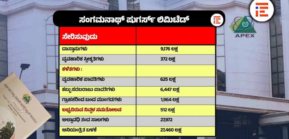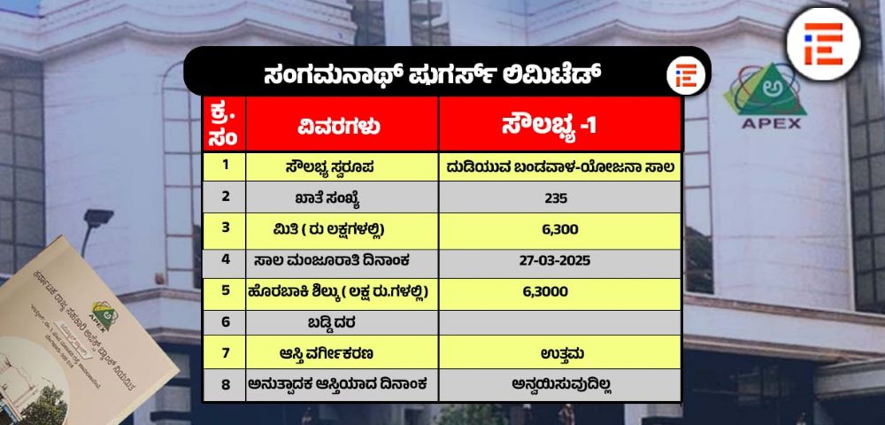 2025ರ ಮಾರ್ಚ್ 27ರಂದು ಅಪೆಕ್ಸ್ ಬ್ಯಾಂಕ್, ಈ ಕಂಪನಿಗೆ 63 ಕೋಟಿ ರು ಸಾಲವನ್ನು ದುಡಿಯುವ ಬಂಡವಾಳ ಯೋಜನಾ ಸಾಲವನ್ನಾಗಿ ಮಂಜೂರು ಮಾಡಿದೆ.