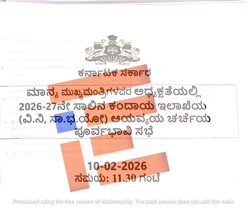 2026-27ನೇ ಸಾಲಿನ ಆಯವ್ಯಯಕ್ಕೆ ಸಂಬಂಧಿಸಿದಂತೆ ಮುಖ್ಯಮಂತ್ರಿ ಸಿದ್ದರಾಮಯ್ಯ ಅವರ ಅಧ್ಯಕ್ಷತೆಯಲ್ಲಿ  2026 ಫೆಬ್ರುವರಿ 10ರಂದು ನಡೆದ ಸಭೆಯಲ್ಲಿ ಕಂದಾಯ ಇಲಾಖೆಯ ಅಧಿಕಾರಿಗಳು ನೀಡಿರುವ ಪ್ರಾತ್ಯಕ್ಷಿಕೆಯಲ್ಲಿ ಈ ಮಾಹಿತಿ ಇದೆ.