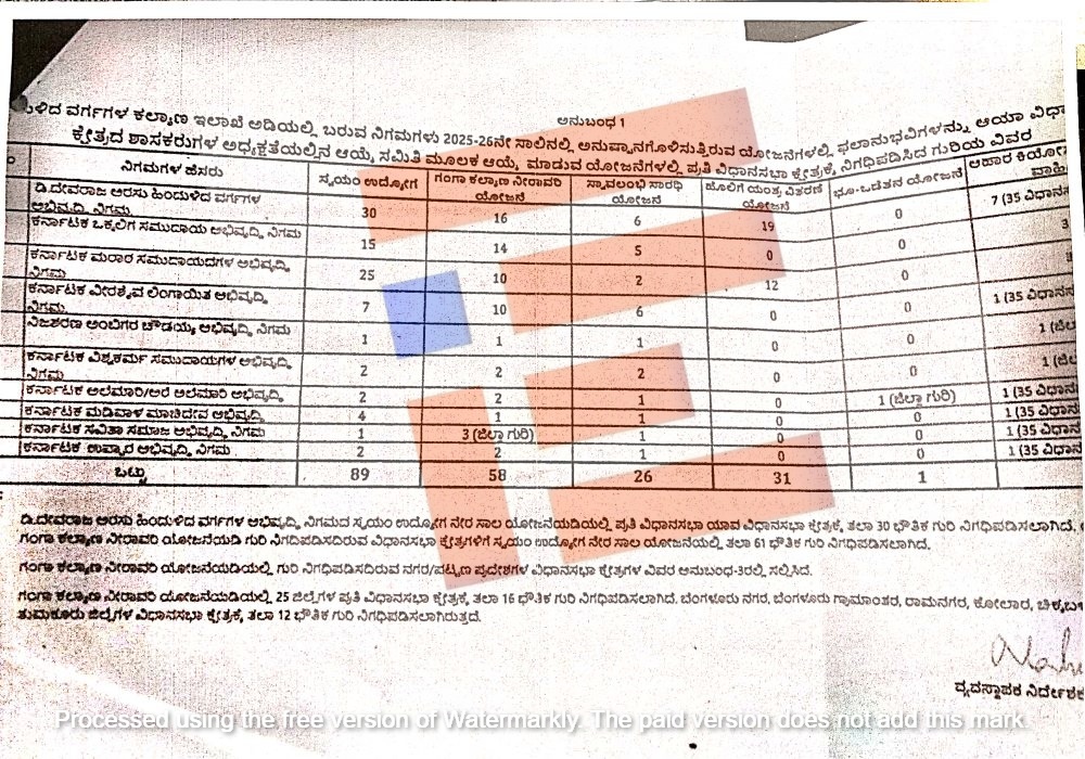 2025-26ನೇ ಸಾಲಿಗೆ ಸಮುದಾಯ ಅಭಿವೃದ್ಧಿ ನಿಗಮಗಳಿಗೆ ಫಲಾನುಭವಿಗಳನ್ನು ಆಯ್ಕೆ ಮಾಡಲು ಶಾಸಕರ ನೇತೃತ್ವದಲ್ಲಿ ಸಮಿತಿ ರಚಿಸಿತ್ತು. ಅಲ್ಲದೇ ಪ್ರತಿ ವಿಧಾನಸಭೆ ಕ್ಷೇತ್ರಕ್ಕೂ ನಿಗದಿತ ಗುರಿ ನೀಡಲಾಗಿತ್ತು. ಸ್ವಯಂ ಉದ್ಯೋಗ, ಗಂಗಾ ಕಲ್ಯಾಣ ನೀರಾವರಿ ಯೋಜನೆ, ಸ್ವಾವಲಂಬಿ ಸಾರಥಿ ಯೋಜನೆ, ಹೊಲಿಗೆ ಯಂತ್ರ ವಿತರಣೆ, ಭೂ ಒಡೆತನ, ಆಹಾರ ಕಿಯೋಸ್ಕ್ ವಾಹಿನಿ, ಅರಿವು ಶೈಕ್ಷಣಿಕ ಸಾಲ ಯೋಜನೆ, ಬ್ಯಾಂಕ್ಗಳ ಸಹಯೋಗದೊಂದಿಗೆ ಸ್ವಯಂ ಉದ್ಯೋಗ ಯೋಜನೆ, ಪಂಚವೃತ್ತಿ, ಸ್ವ ಸಹಾಯ ಸಂಘಗಳಿಗೆ ನೆರವು, ವಿಭೂತಿ ಘಟಕ, ಮರಾಠ ಮಿಲ್ಟ್ರಿ ಹೋಟೆಲ್ ಹೀಗೆ ಆಯಾ ಸಮುದಾಯ ಅಭಿವೃದ್ಧಿ ನಿಗಮಗಳಿಗೆ ನಿಗದಿತ ಗುರಿ ನೀಡಲಾಗಿತ್ತು.