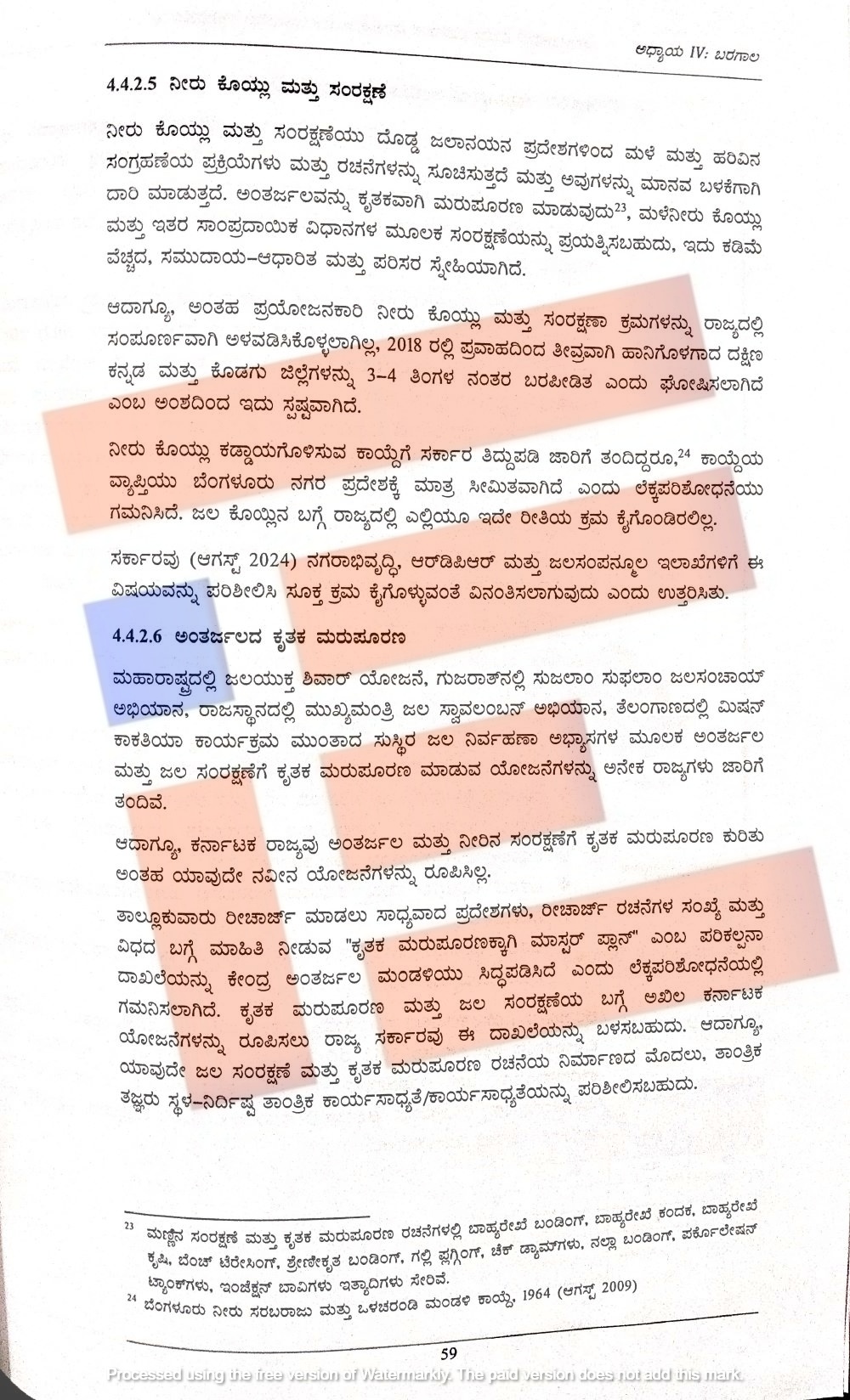 ಆದರೆ ಕರ್ನಾಟಕ ದಲ್ಲಿ ಅಂತರ್ಜಲ ಮತ್ತು ನೀರಿನ ಸಂರಕ್ಷಣೆಗೆ ಕೃತಕ ಮರುಪೂರಣ ಕುರಿತು ಅಂತಹ ಯಾವುದೇ ನವೀನ ಯೋಜನೆಗಳನ್ನೇ ರೂಪಿಸಿಲ್ಲ ಎಂದು ಸಿಎಜಿ ವರದಿ ಹೇಳಿದೆ.