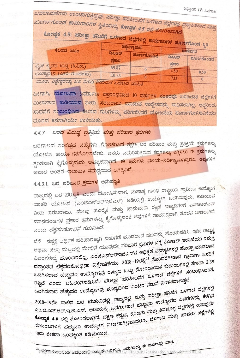 ಅಲ್ಲದೇ ಚಿಕ್ಕಬಳ್ಳಾಪುರ ಜಿಲ್ಲೆಯ ಪ್ರಕರಣವನ್ನು ಅಧ್ಯಯನ ಮಾಡಿದೆ. ಯೋಜನೆ ನಿರ್ಮಾಣ ಆರಂಭವಾದ ದಿನದಿಂದ 10 ವರ್ಷಗಳವರೆಗೆ ಯೋಜನೆಗಳು ಸಾಗಿರುವ ಹಾದಿ, ಪ್ರಗತಿ ಕುರಿತು ತನ್ನ ಅವಲೋಕನಗಳನ್ನು ವರದಿಯಲ್ಲಿ ವಿಸ್ತೃತವಾಗಿ ವಿಶ್ಲೇಷಿಸಿದೆ.