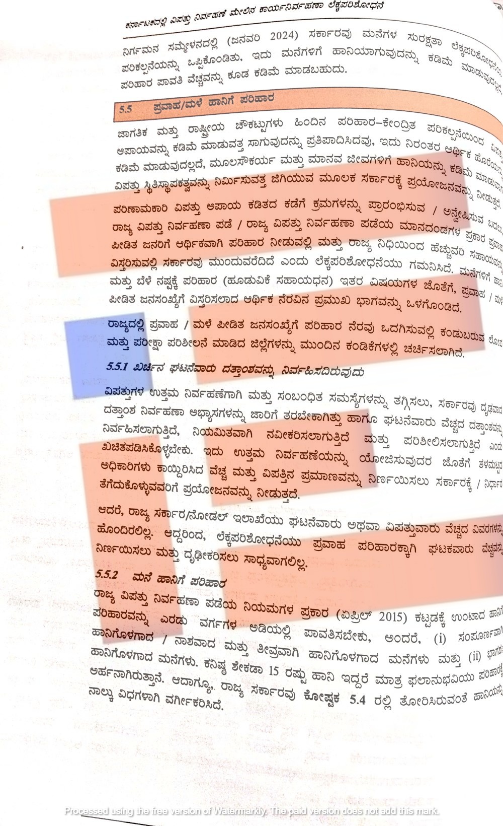 ಅಲ್ಲದೇ ಮಳೆ ಹಾನಿ ಪರಿಹಾರಕ್ಕಾಗಿ ರಾಜ್ಯ ಸರ್ಕಾರವು ಪದೇ ಪದೇ ಷರತ್ತುಗಳನ್ನು ವಿಧಿಸುತ್ತಿರುವುದು ಮತ್ತು ಷರತ್ತುಗಳನ್ನ ಕಾರಣಗಳಿಲ್ಲದೇ ಹಿಂಪಡೆದುಕೊಳ್ಳುತ್ತಿರುವುದನ್ನೂ ಸಹ ಸಿಎಜಿಯ ಲೆಕ್ಕ ಪರಿಶೋಧನೆಯಲ್ಲಿ ಬಹಿರಂಗವಾಗಿದೆ.