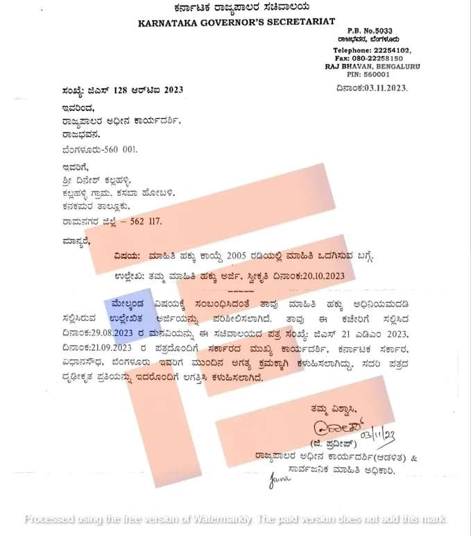ಈ ಕುರಿತು ಅಗತ್ಯ ಕ್ರಮ ವಹಿಸಬೇಕು ಎಂದು ರಾಜ್ಯಪಾಲರು ಸರ್ಕಾರದ ಮುಖ್ಯ ಕಾರ್ಯದರ್ಶಿಗೆ 2023ರ ನವೆಂಬರ್ 3ರಂದು ಹಿಂಬರಹ ನೀಡಿದ್ದರು. 3 ವರ್ಷಗಳಾದರೂ ಯಾವುದೇ ಕ್ರಮವಹಿಸಿಲ್ಲ.