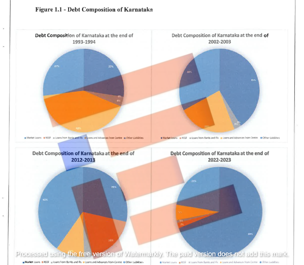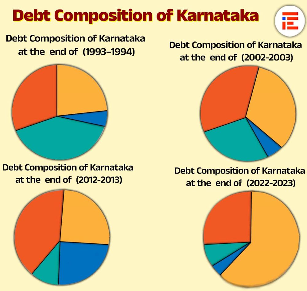 ಮಾರುಕಟ್ಟೆ ಸಾಲವು ರಾಜ್ಯದ ಪ್ರಮುಖ ಸಾಲಮೂಲವಾಗಿ ಮುಂದುವರಿದಿದ್ದು, 1993-94ರಲ್ಲಿ ಶೇಕಡಾ 27ರಷ್ಟಿದ್ದ ಮಾರುಕಟ್ಟೆ ಸಾಲದ ಪ್ರಮಾಣವು 2022-23ರಲ್ಲಿ ಶೇಕಡಾ 69ರಷ್ಟಕ್ಕೆ ಜಾಸ್ತಿಯಾಗಿದೆ. ಇದೇ ವೇಳೆ, ಕೇಂದ್ರ ಸರ್ಕಾರದಿಂದ ಪಡೆಯುವ ಸಾಲ ಹಾಗೂ ಮುಂಗಡಗಳ ಪ್ರಮಾಣವು ತೀವ್ರವಾಗಿ ಇಳಿಕೆಯಾಗುತ್ತಿದ್ದು, 1993-94ರಲ್ಲಿದ್ದ ಶೇಕಡಾ 42ರಷ್ಟಿಂದ ಶೇಕಡಾ 2ಕ್ಕೆ ಕುಸಿದಿದೆ.