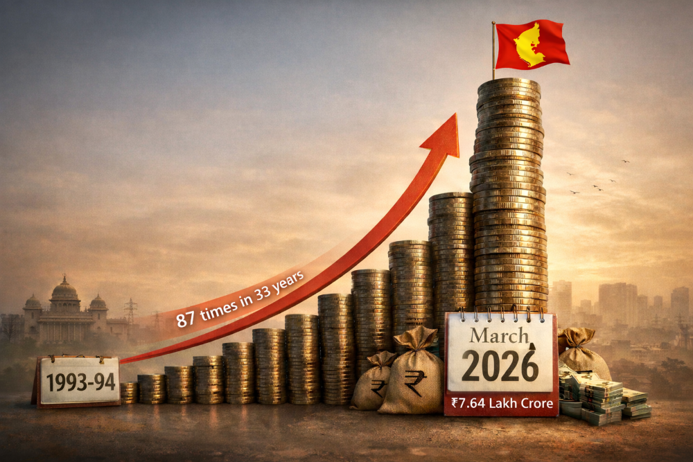 ಬೆಂಗಳೂರು; ರಾಜ್ಯದ ಒಟ್ಟು ಸಾಲಬಾಧ್ಯತೆಯು ಕಳೆದ ಮೂರು ದಶಕಗಳಲ್ಲಿ ತೀವ್ರವಾಗಿ ಏರಿಕೆಯಾಗುತ್ತಲೇ ಇದ್ದು, ಈ ಅವಧಿಯಲ್ಲಿ ಈ ಮೊತ್ತವು ಸುಮಾರು 87 ಪಟ್ಟುಗಳಷ್ಟು ಹೆಚ್ಚಾಗಿದೆ.