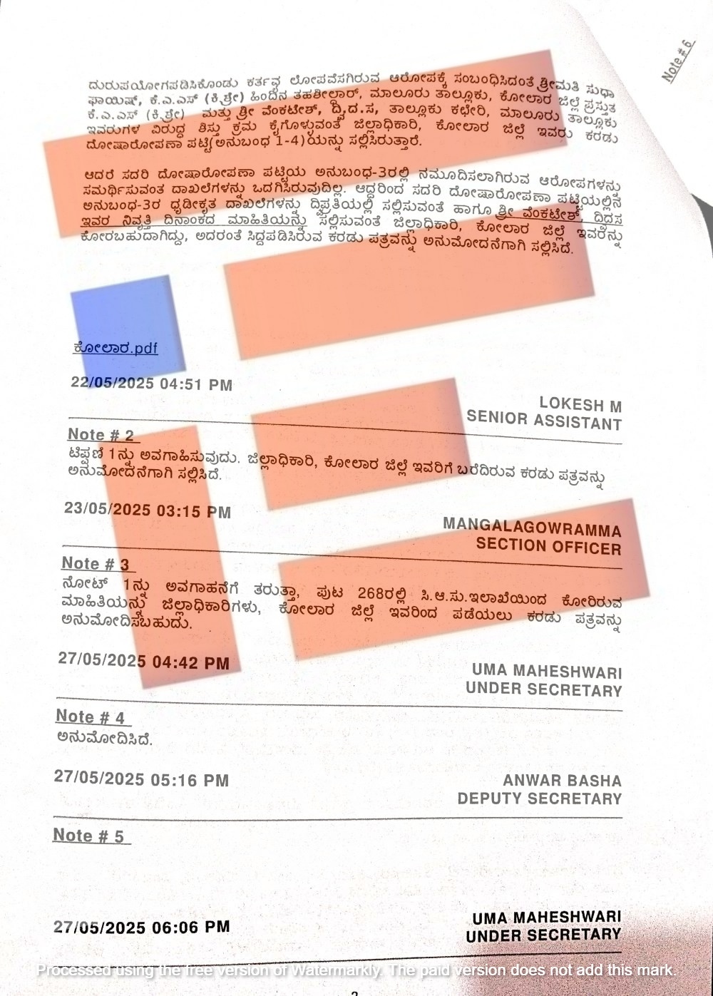 ಈ ಪ್ರಕರಣದಲ್ಲಿನ ಮತ್ತೊಬ್ಬ ಆರೋಪಿತ ದ್ವಿತೀಯ ದರ್ಜೆ ಸಹಾಯಕ ವೆಂಕಟೇಶ್ ಅವರು ಇದೇ 2026ರ ಮಾರ್ಚ್ 31ರಂದು ನಿವೃತ್ತಿಯಾಗಲಿದ್ದಾರೆ. ಆದರೂ ಕೋಲಾರ ಜಿಲ್ಲಾಧಿಕಾರಿಯವರು ಈ ಪ್ರಕರಣಕ್ಕೆ ಸಂಬಂಧಿಸಿದಂತೆ ಸರಿಯಾದ ಮಾಹಿತಿಯು ಕಂದಾಯ ಇಲಾಖೆಗೆ ಸ್ವೀಕೃತವಾಗಿಲ್ಲ.
