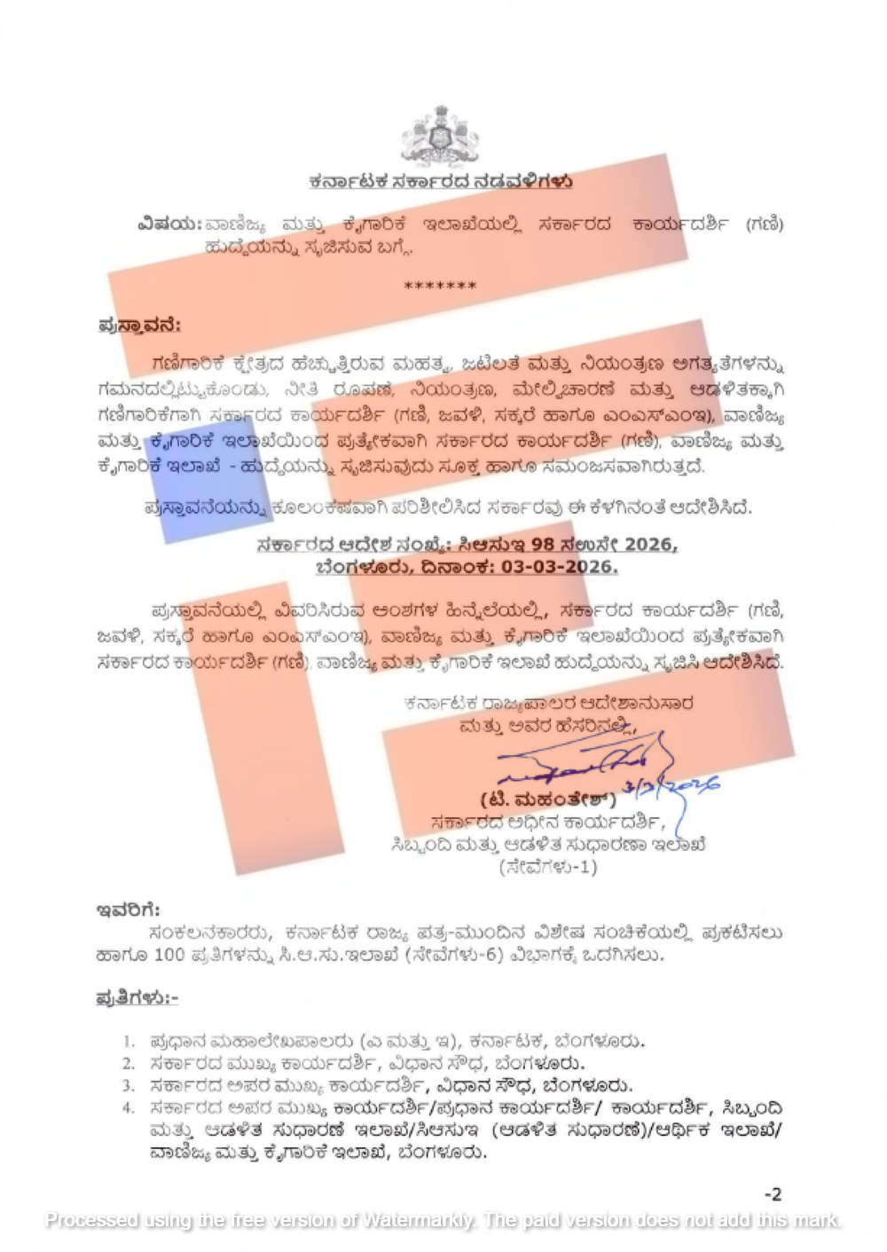 ಅಧಿಸೂಚನೆಯಲ್ಲೇನಿದೆ?