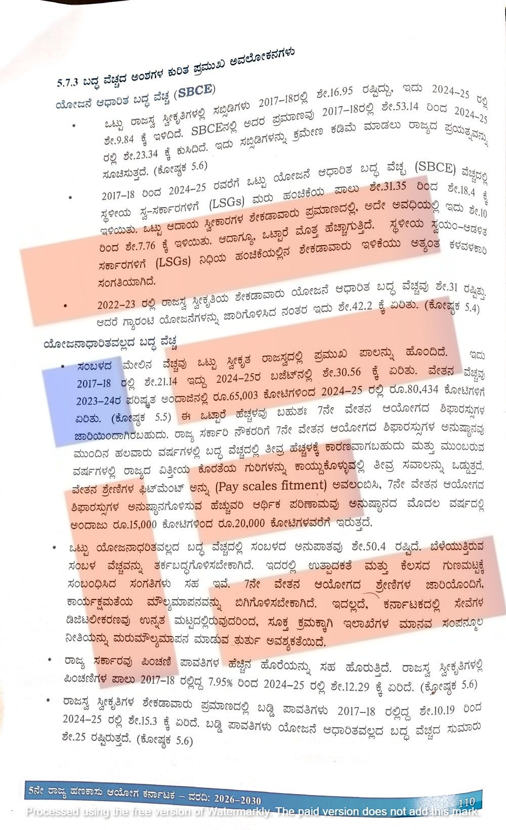 2026ನೇ ಮಾರ್ಚ್ನಲ್ಲಿ ನಡೆದ ವಿಧಾನಮಂಡಲ ಅಧಿವೇಶನದಲ್ಲಿ ಮಂಡನೆಯಾಗಿರುವ 5ನೇ ರಾಜ್ಯ ಹಣಕಾಸು ಆಯೋಗದ ವರದಿಯು ಯೋಜನಾಧಾರಿತವಲ್ಲದ ಬದ್ಧ ವೆಚ್ಚದ ಕುರಿತು ನೀಡಿರುವ ವಿವರಣೆಯಲ್ಲಿ 7ನೇ ವೇತನ ಆಯೋಗದ ಶಿಫಾರಸ್ಸಿನಿಂದಾಗಲಿರುವ ಆರ್ಥಿಕ ಪರಿಣಾಮಗಳ ಕುರಿತು ವಿಶ್ಲೇಷಣೆ ನಡೆಸಿದೆ.
