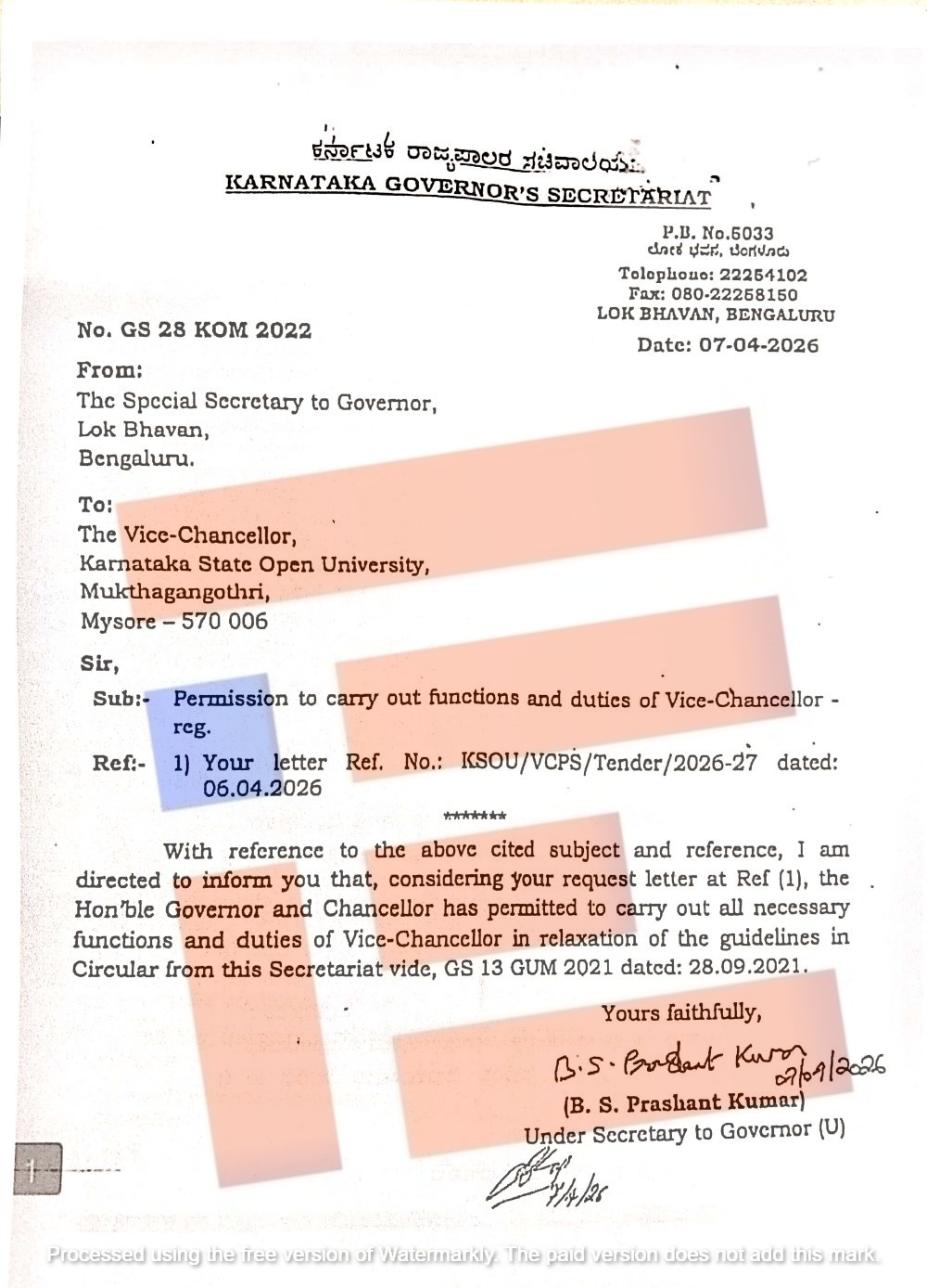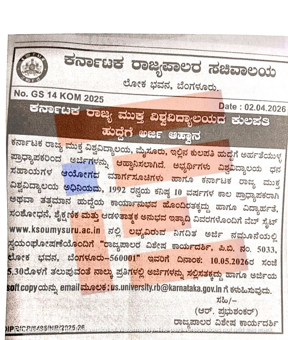 ಮತ್ತೊಂದು ವಿಶೇಷವೆಂದರೇ ಕರ್ನಾಟಕ ರಾಜ್ಯ ಮುಕ್ತ ವಿಶ್ವವಿದ್ಯಾಲಯಕ್ಕೆ ನೂತನ ಕುಲಪತಿ ನೇಮಕಾತಿಗೆ ರಾಜ್ಯಪಾಲರ ಸಚಿವಾಲಯವು 2026ರ ಏಪ್ರಿಲ್ 2ರಂದೇ ಅಧಿಸೂಚನೆ ಹೊರಡಿಸಿದೆ. ಅರ್ಜಿ ಸಲ್ಲಿಸಲು 2026ರ ಮೇ 10ರಂದು ಕಡೆ ದಿನಾಂಕವಾಗಿದೆ.