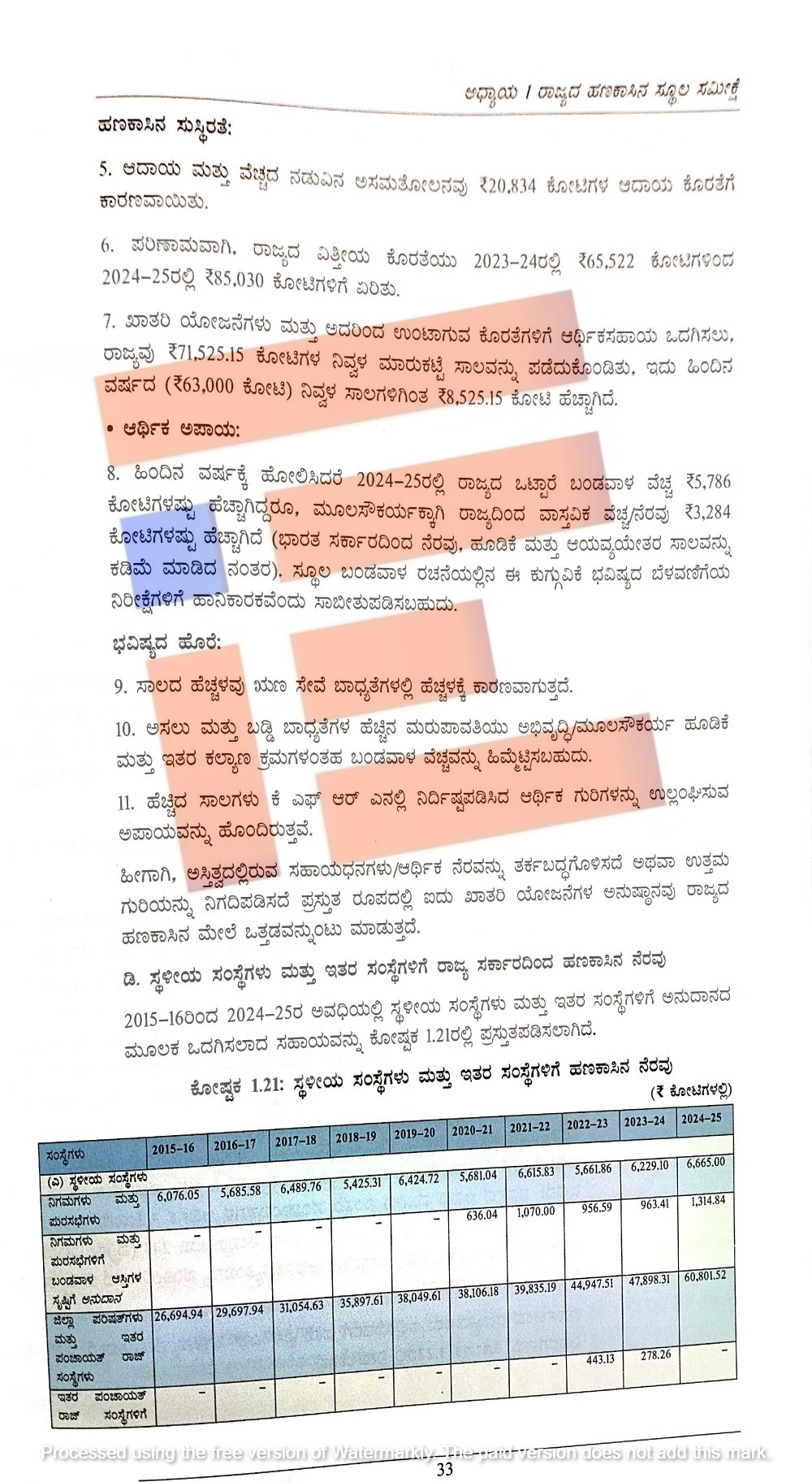 ವಿಧಾನಮಂಡಲದ ಉಭಯ ಸದನಗಳಿಗೆ 2025ರ ಮಾರ್ಚ್ 31ರ ಅಂತ್ಯಕ್ಕೆ ಕೊನೆಗೊಂಡ ವರ್ಷದ ರಾಜ್ಯ ಹಣಕಾಸು ಲೆಕ್ಕ ಪರಿಶೋಧನಾ ವರದಿಯು ರಾಜ್ಯದ ಹಣಕಾಸಿನ ಅಶಿಸ್ತಿನ ಹಲವು ಮುಖಗಳನ್ನು ತೆರೆದಿಟ್ಟಿದೆ.