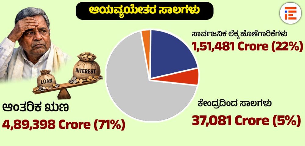 2024-25ರ ಅವಧಿಯಲ್ಲಿ ರಾಜ್ಯವು ಪಡೆದ ಸಾರ್ವಜನಿಕ ಸಾಲವು ಹಿಂದಿನ ವರ್ಷಕ್ಕಿಂತ ಸುಮಾರು 12 ಪ್ರತಿಶತದಷ್ಟು ಹೆಚ್ಚಾಗಿದೆ. ಏಕೆಂದರೇ ರಾಜ್ಯದ ಆಂತರಿಕ ಸಾಲವು ಹಿಂದಿನ ವರ್ಷಕ್ಕೆ ಹೋಲಿಸಿದರೇ ಸುಮಾರು 17 ಪ್ರತಿಶತದಷ್ಟು ಹೆಚ್ಚಾಗಿದೆ. ಜಿಎಸ್ಡಿಪಿಯ ಶೇಕಡವಾರು ಪ್ರಮಾಣಕ್ಕೆ ಹೋಲಿಸಿದರೇ ಬಾಕಿ ಇರುವ ಹೊಣೆಗಾರಿಕೆಗಳು ಕರ್ನಾಟಕ ಆರ್ಥಿಕ ಸಂಹಿತೆ ಗುರಿಯಲ್ಲಿ ಶೇ. 25ರಷ್ಟಿತ್ತು. 2022-23ನೇ ಸಾಲಿನಲ್ಲಿ ಆದಾಯ ಹೆಚ್ಚುವರಿಯನ್ನು ಸಾಧಿಸಿತ್ತು. ನಂತರ ಎರಡನೇ ವರ್ಷವೂ ರಾಜ್ಯವು ರಾಜಸ್ವ ಕೊರತೆಯನ್ನು ಕಂಡಿತ್ತು. ಹೀಗಾಗಿ ರಾಜ್ಯದ ಹೊರಗಿರುವ ಹೊಣೆಗಾರಿಕೆಗಳಲ್ಲಿ ಹೆಚ್ಚಳ ಕಂಡು ಬಂದಿದೆ ಎಂದು ಸಿಎಜಿಯು ವಿಶ್ಲೇಷಿಸಿರುವುದು ತಿಳಿದು ಬಂದಿದೆ.