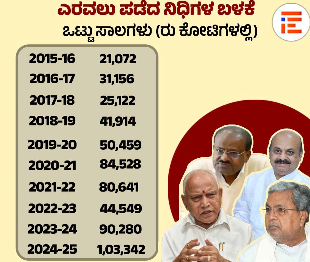 ಈ ಅವಧಿಯಲ್ಲಿ ಎರವಲು ಪಡೆದ ನಿಧಿಗಳನ್ನು ನಿವ್ವಳ ಬಂಡವಾಳ ವೆಚ್ಚದ ರೂಪದಲ್ಲಿಯೂ ಬಳಸಿತ್ತು. 2015-16ರಲ್ಲಿ 20,361 ಕೋಟಿ, 2016-17ರಲ್ಲಿ 28,123 ಕೋಟಿ, 2017-18ರಲ್ಲಿ 30,663 ಕೋಟಿ, 2018-19ರಲ್ಲಿ 34,665 ಕೋಟಿ, 2019-20ರಲ್ಲಿ 35,485 ಕೋಟಿ, 2020-21ರಲ್ಲಿ 45,361 ಕೋಟಿ, 2021-22ರಲ್ಲಿ 57, 347 ಕೋಟಿ, 2023-24ರಲ್ಲಿ 52,084 ಕೋಟಿ, 2024-25ರಲ್ಲಿ 57,885 ಕೋಟಿಯಷ್ಟು ಬಳಕೆ ಮಾಡಿದೆ.