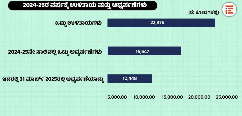ಹಾಗೆಯೇ 2024-25ನೇ ಸಾಲಿನಲ್ಲಿ 21 ಅನುದಾನಗಳಡಿಯಲ್ಲಿ 10.546.42 ಕೋಟಿ ರುಪಾಯಿ ಮೊತ್ತದ ಉಳಿತಾಯವನ್ನು ಇಲಾಖೆಗಳು ಸರ್ಕಾರಕ್ಕೆ ಮರಳಿಸಿರಲಿಲ್ಲ. ಮತ್ತು ಈ ಪೈಕಿ 2025ರ ಮಾರ್ಚ್ 31ರಂದು 10,.448 ಕೋಟಿ ರುಪಾಯಿಗಳನ್ನು ಸರ್ಕಾರಕ್ಕೆ ವಾಪಸ್ ಮಾಡಿತ್ತು. ಈ ಅಂಕಿ ಅಂಶಗಳ ಪ್ರಕಾರ ಒಟ್ಟು ಮರಳಿಸಿದ್ದ 16,547 ಕೋಟಿಯಲ್ಲಿ 10,448 ಕೋಟಿ ರುಪಾಯಿ (ಶೇ. 63.14) ಮೊತ್ತವನ್ನು ಮಾರ್ಚ್ 31ರಂದು ಮರಳಿಸಿತ್ತು.