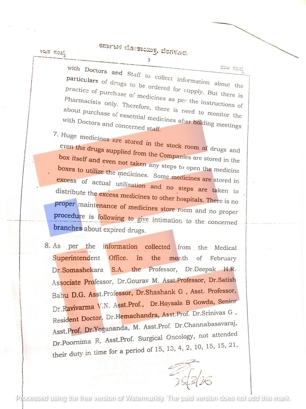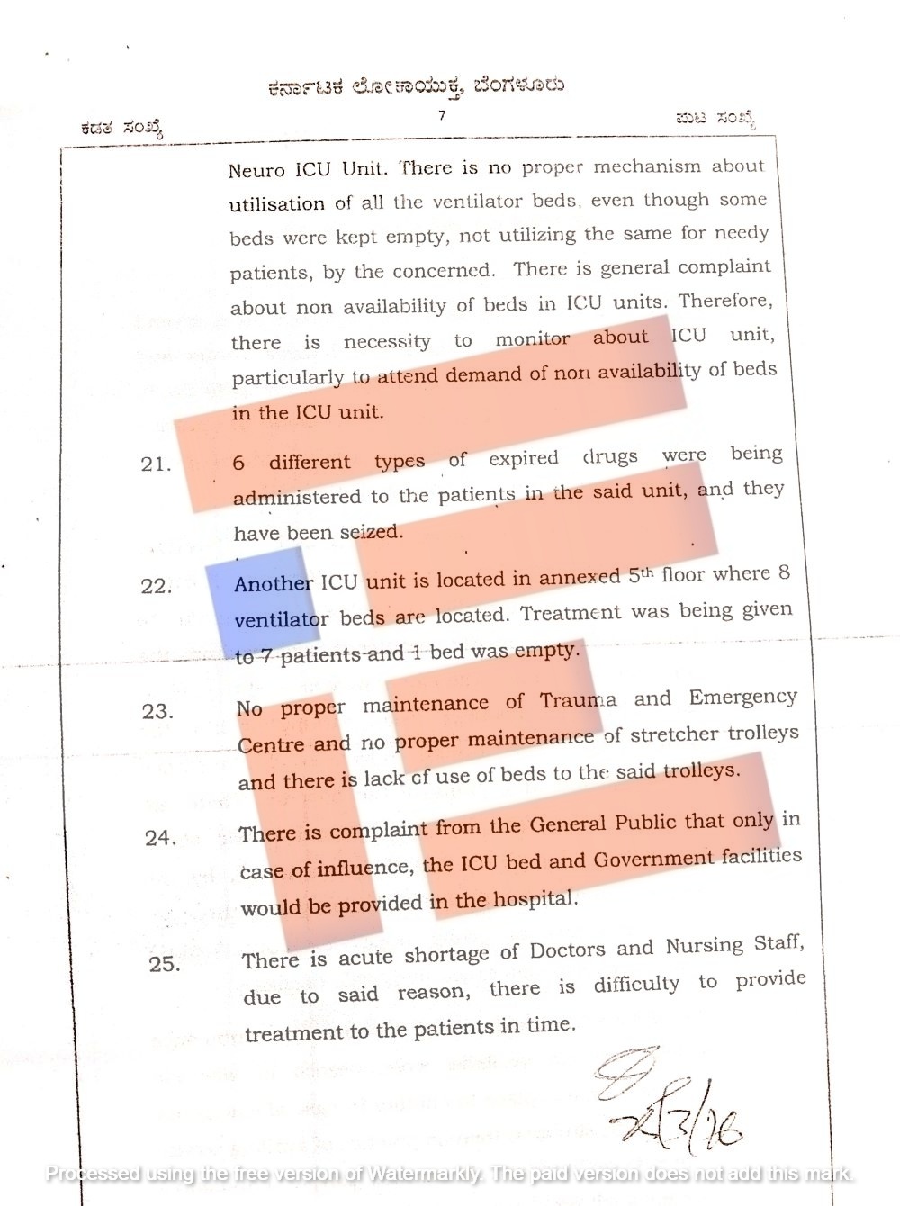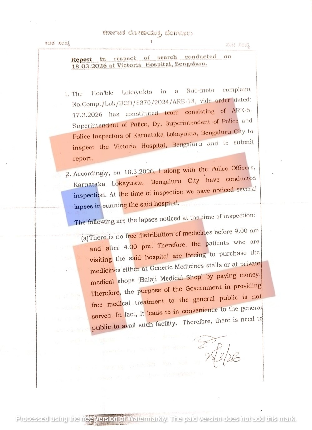 ಹೀಗೆ ವಿಕ್ಟೋರಿಯಾ ಆಸ್ಪತ್ರೆಯಲ್ಲಿ ಅಸ್ತವ್ಯಸ್ತ, ದುರಾಡಳಿತ, ಕರ್ತವ್ಯ ನಿರ್ಲಕ್ಷ್ಯ ಸೇರಿದಂತೆ ಇನ್ನಿತರೆ ಗಂಭೀರ ಲೋಪದೋಷಗಳನ್ನು ಲೋಕಾಯುಕ್ತ ತನಿಖಾ ತಂಡವು ಪತ್ತೆ ಹಚ್ಚಿದೆ.