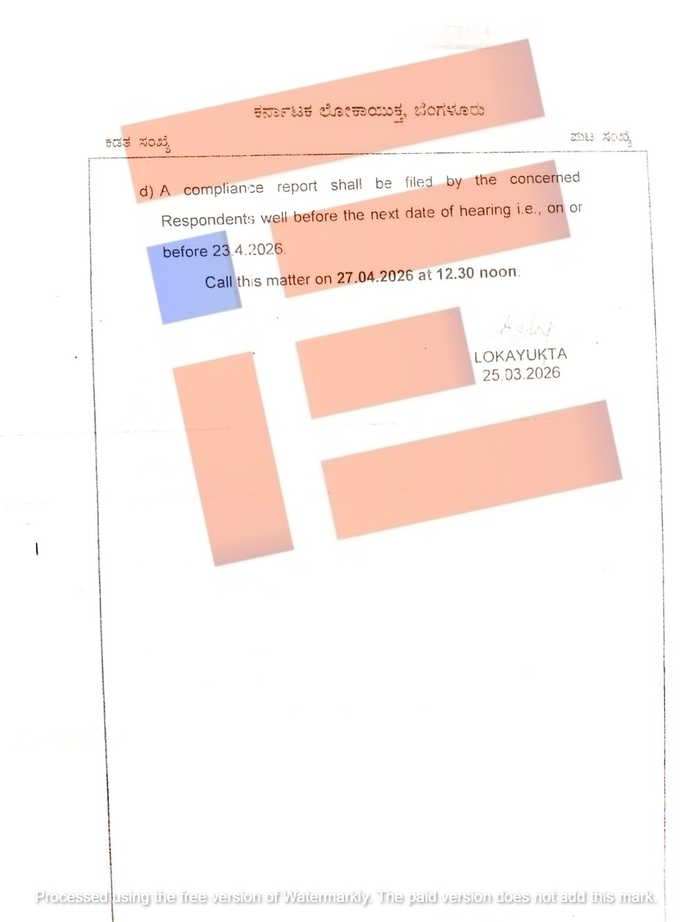 ವಿಕ್ಟೋರಿಯಾ ಆಸ್ಪತ್ರೆಯಲ್ಲಿನ ಅಸ್ತವ್ಯಸ್ತಗಳ ಬಗ್ಗೆ ಲೋಕಾಯುಕ್ತ ಬಿ ಎಸ್ ಪಾಟೀಲ್ ಅವರು ಸ್ವಯಂ ಪ್ರೇರಿತವಾಗಿ ದೂರನ್ನು ದಾಖಲಿಸಿಕೊಂಡಿದ್ದರು. ಈ ದೂರನ್ನಾಧರಿಸಿ ಲೋಕಾಯುಕ್ತ ತನಿಖಾ ತಂಡವು ಪ್ರತ್ಯೇಕವಾಗಿ ಶೋಧನೆ ಕೈಗೊಂಡಿತ್ತು. ಈ ಶೋಧನೆ ವರದಿ ಆಧರಿಸಿ ಇದೀಗ ಲೋಕಾಯುಕ್ತರು ಇದೇ 2026ರ ಏಪ್ರಿಲ್ 27ರಂದು ವಿಚಾರಣೆ ನಡೆಸಲಿದ್ದಾರೆ.